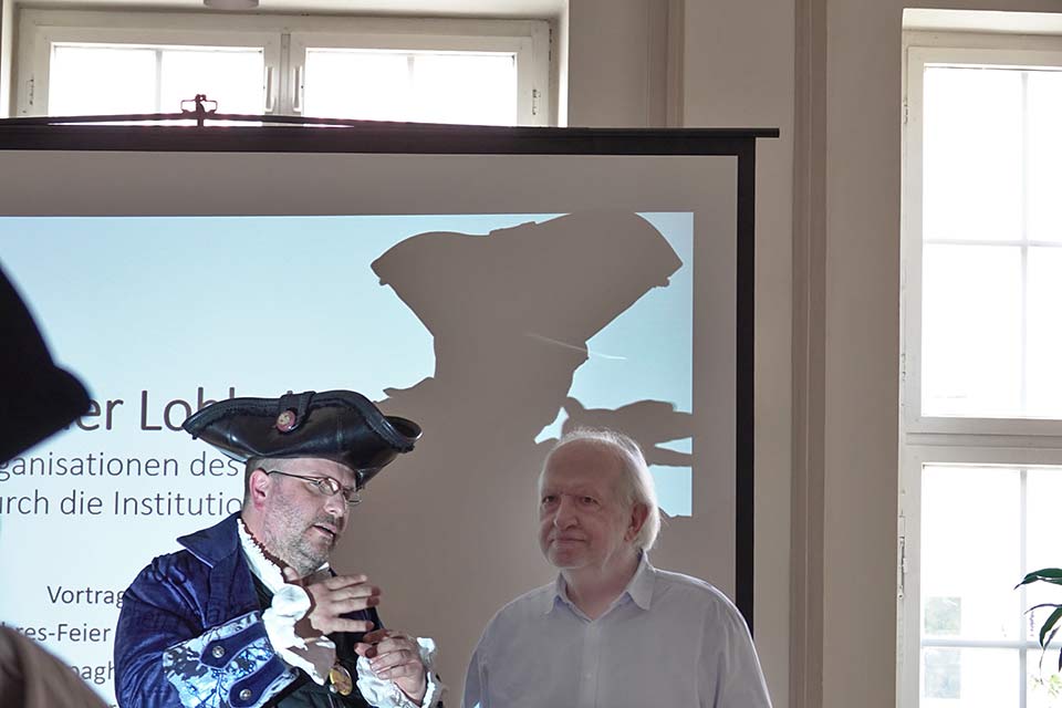 Eine tolle Überraschung gab es schon vor dem Vortrag. Die Chiesa Pastafariana Italiana, mit der wir in der Pastachse Rom-Berlin verbunden sind, hatte einen Delegierten geschickt. Davide Belettini hat uns nicht nur Grüße und Glückwünsche überbracht, sondern auch ein kleines Grußwort auf Video. Dazu dann noch später.