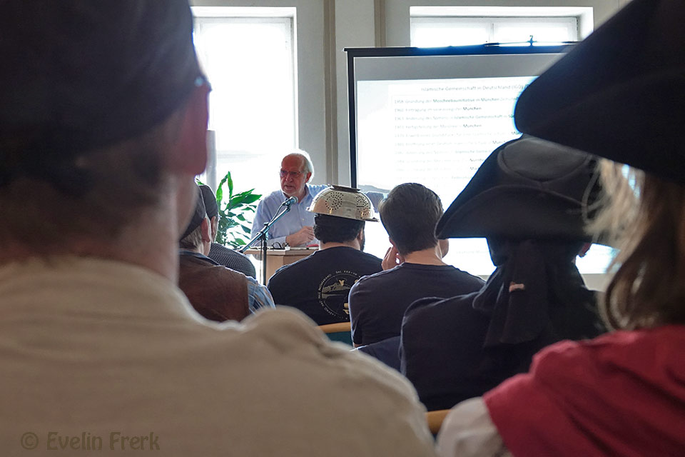 Der Vortrag von Dr. Carsten Frerk über islamische Lobbyarbeit war sehr gefragt. Sogar aus Berlin reisten dafür Gäste an. Wir ahnten das und setzten deshalb bei unseren Innenveranstaltungen auf die 2G-Regeln. Ohne die hätten wir nur 22 der 50 Plätze im Festsaal des Historischen Rathauses besetzen können. Die hätten nie und nimmer gereicht.