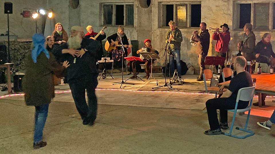 Vielleicht lag es auch daran, dass es dem UFO schnell gelang, uns auf die Tanzfläche zu holen. Noch mehr aber wohl an dem Folkorchester selbst. Am Ende des Abends waren selbst ausgemachte Tanzmuffel auf dem Beton. Es wurde abgefeiert – wir hatten großen Spaß an der Truppe und die, nach eigenem Bekunden, auch ihren Spaß an uns.
