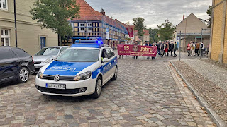 Schon hier schlossen sich Templiner dem Zug an. Die Polizei, die echt gut drauf war, sicherte uns bestens ab und stoppte, wo es nötig war, den Verkehr.