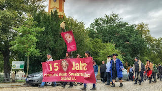 Dafür waren wir aber am nächsten Morgen alle richtig fit, als es zur Prozession ging. Gestärkt vom gemeinsamen Frühstück, liebevoll zubereitet vom Waldhof, ging es zum Neuen Rathaus.