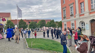 So kamen wir guten Mutes vor dem Historischen Rathaus an. Dort warteten schon weitere Templiner auf unsere Nudelmesse. Offensichtlich hatten wir ihren Geschmack voll getroffen, manche bekamen ein breites Grinsen gar nicht mehr aus dem Gesicht. Bruder Mayo, der die Messe gehalten hat, kam bestens an.