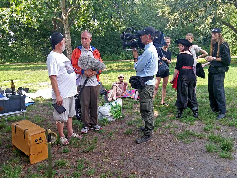 Alfons wollte uns für seine Fernsehsendung „Alfons und Gäste“ und ist deshalb zur Nudelmesse auf dem Kleinen Bunkerberg in Berlin eingeflogen. Natürlich mit Trainingsjacke, Puschelmikrofon, einem Stapel Skripte und Kameramann. Letzterer war auch richtig locker drauf und hat sogar mal an unserem Biervulkan genascht. 🙂