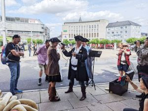 Bruder Mayo zog sein Nudlergewand an und die Messe begann. Natürlich blieben Passanten stehen, fotografierten unsere bunte Truppe und ließen sich Infomaterial geben.