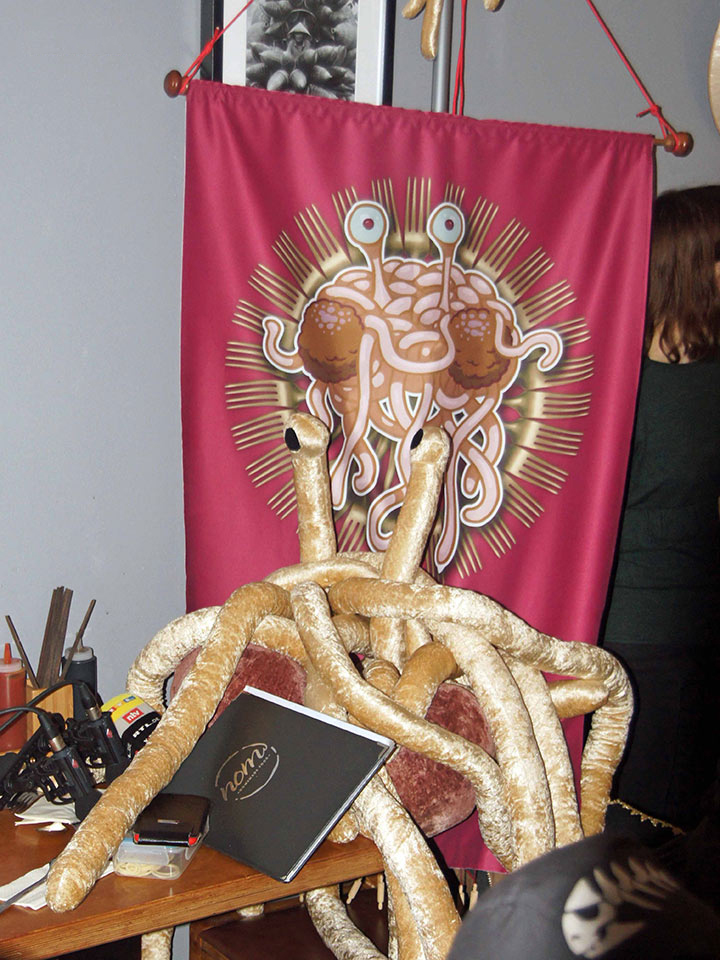 Freitag ging es zur Nudelmesse nach Hamburg. Die Gründung einer norddeutschen Gemeinde war geplant. Das brachte sogar RTL Nord und eine Radiojournalistin auf den Plan, und wir wollten rechtzeitig zu den Vorbesprechungen da sein. Das wurde nichts. So wüst wie auf dem Foto oben war auch die Fahrt nach Hamburg. Zwei Demos und ständiges Stopp und Go in der Stadt machten, dass wir statt einer Stunde vor der Messe gerade mal 5 min vorher da waren. Nach knapp 5 Stunden Fahrt, Parkplatz- und anschließen Parkgeldsuche war ich an der Grenze der Belastbarkeit. Aber die Piraten, von denen einige schon alte Haudegen waren, ihre Freude am Treffen und die rundum gute Laune machten mich wieder munter.