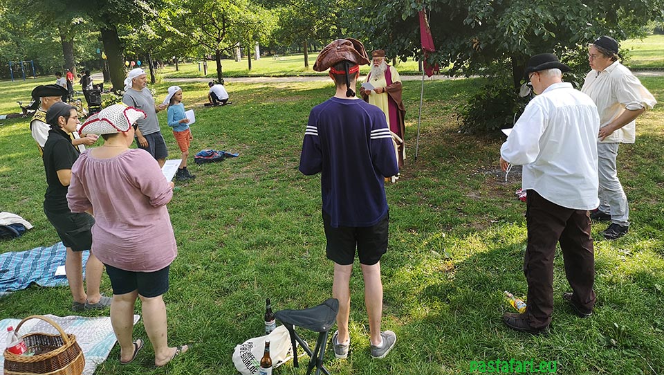 Bevor am Wochenende wieder ein Pastafari und seine Braut von uns in pastafarianischer Zeremonie getraut werden, möchte ich über das Treffen der Spreeräuber im Stadtpark Friedrichshain berichten.