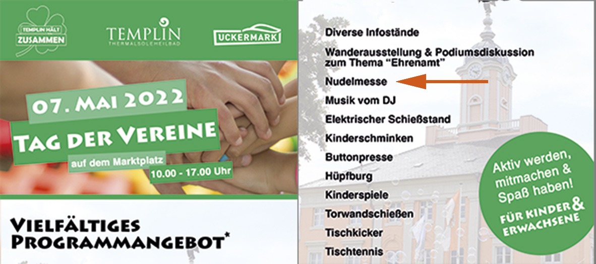 Wir wurden angefragt, ob wir zu diesem Anlass nicht im offiziellen Programm eine Nudelmessehalten wollen. Na, da haben wir doch sofort zugesagt.
