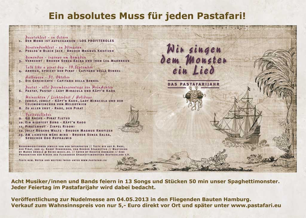 Das könnt ihr ab sofort nach Freischaltung der Seite, ausgeliefert wird allerdings erst nach der Veröffentlichung am 04.05.2013 zur Heiligen Nudelmesse in Hamburg und nur auf Vorkasse.