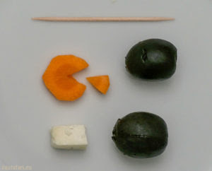 Das haben dann sogar die großen Piraten übernommen. Allerdings mit einer kleinen Abwandlung. Weil sie die gespießten Pinguine gern zum Rotwein naschen, haben sie die Möhrenscheibe ersetzt. Sie nehmen sich etwas Scharfes rundes und stechen damit ihre Scheiben aus Käse aus.