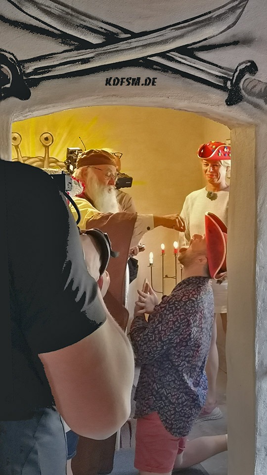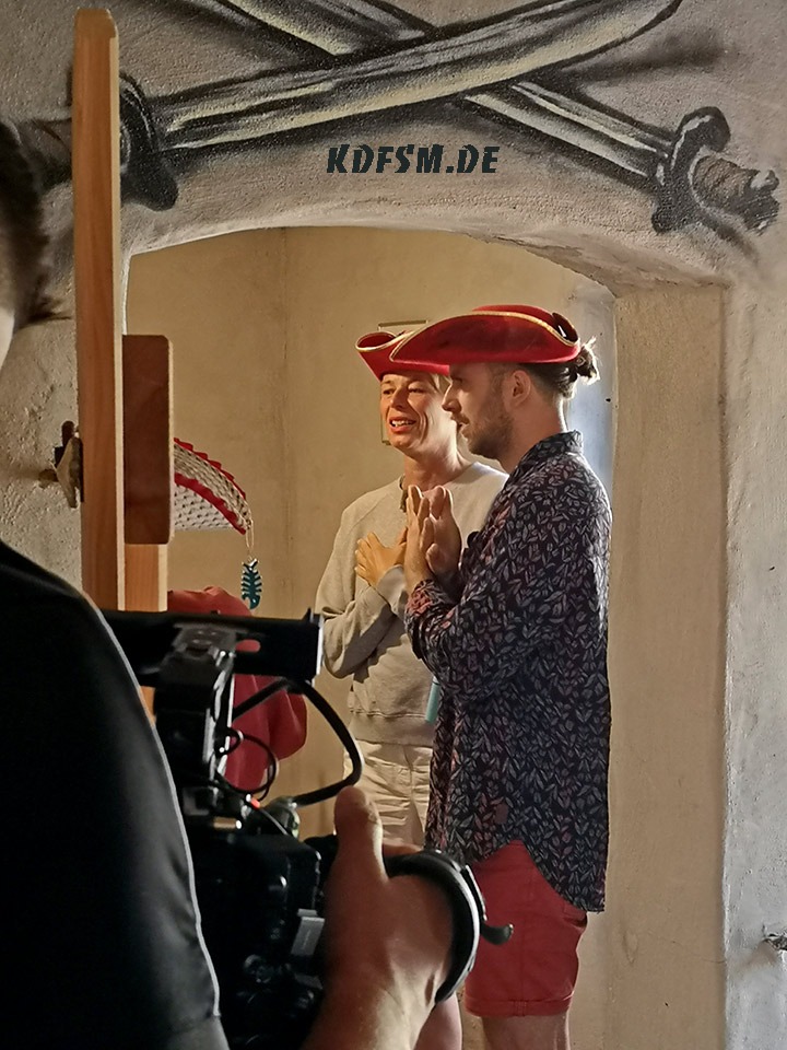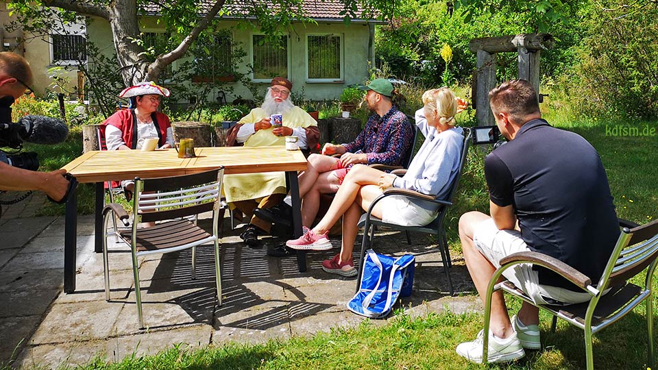 Was ihr nicht sehen könnt: Das gesamte Filmteam amüsierte sich köstlich. Eigentlich war aber auch gar nichts anderes zu erwarten. Der Beleuchter war sogar mit einer Augenklappe angereist und hat zum Abschied ein baldiges Wiedersehen angekündigt.
