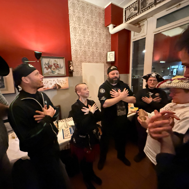 Gar nicht so sehr lange nach der Sommernudelmesse trafen sich am 17.01.2026 die Spreeräuber wieder einmal zu einer zünftigen Nudelmesse. Diesmal im Da Pia – mitten in Berlin. Einige bekannte Gesichter aus früheren Nudelmessen waren dabei und mit Spreeräuber-Kapitän Käptn Flunkenfug und Tini Tortellini auch schon alte Hasen der Freibeuterschaft. Aber auch ganz neue Pastafari durften wir begrüßen. Leider hatte irgend so ein Miststück namens Virus Bruder Spaghettus und Elli Spirelli flachgelegt, das war schade, konnte uns aber nicht davon abhalten, es uns gut gehen zu lassen und dem Monster ordentlich zu huldigen.