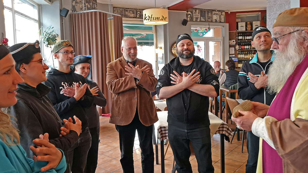 Als ich zurückkam, stand ein älterer Herr mit breitem Rücken am Tisch und wollte wissen, ob denn dieses Mal der „Vorsteher“ nicht dabei wäre. Warum alle am Tisch da zu lachen begannen verstand er, als ich, direkt hinter ihm stehend, fragte: „Kann es auch ein Hintersteher sein?“
