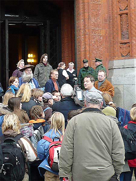 Wieder war ein Dreierteam vom RBB vor Ort, um Berlin zu informieren. Schon vor der Kirche wurden wir vom Chef des Teams recht mürrisch begrüßt. Es war ihm deutlich anzusehen, er kannte uns schon und mochte uns nicht. Unser Infomaterial, das wir ihm in die Hand drückten, gab er ungelesen an Passanten weiter.