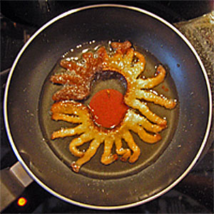 Sogar den Speck in der Pfanne hat es überzeugt, SEINE Gestallt anzunehmen. Neigen wir uns in Ehrfurcht vor diesem Wunder.
