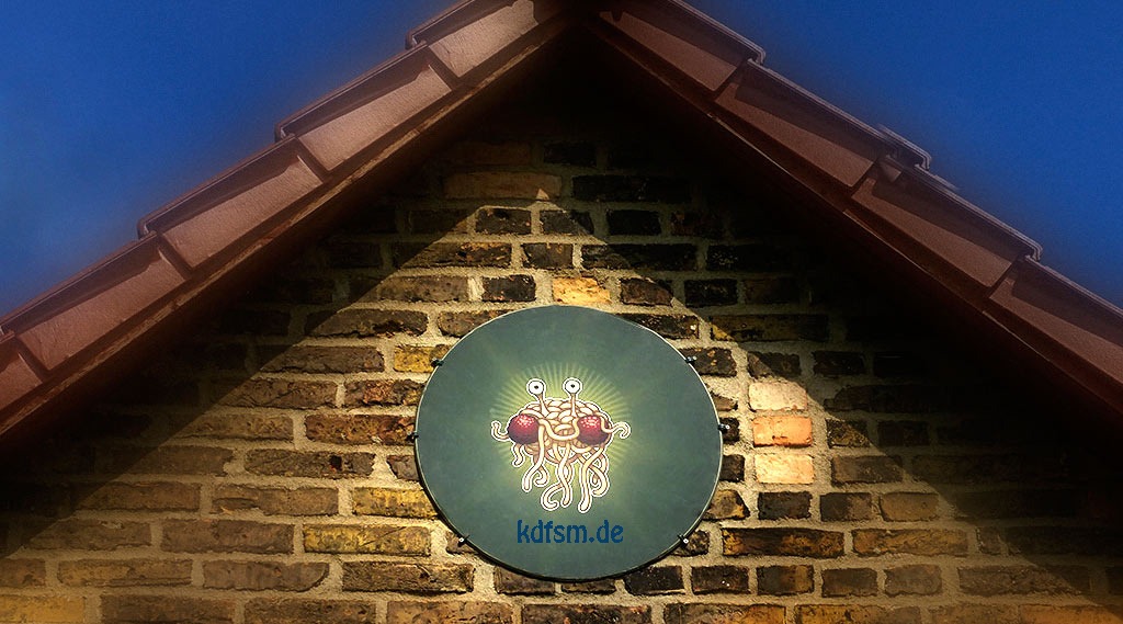 Viel ist seitdem geschehen. Diese Kirche hat uns weltweit bekannt gemacht. Das liegt an den Nudelmessen, die seitdem freitags dort gehalten werden, aber vor allem an den Nudelmessen-Hinweisschildern, mit denen wir unsere Gottesdienste ankündigen, wie andere Kirchen auch.