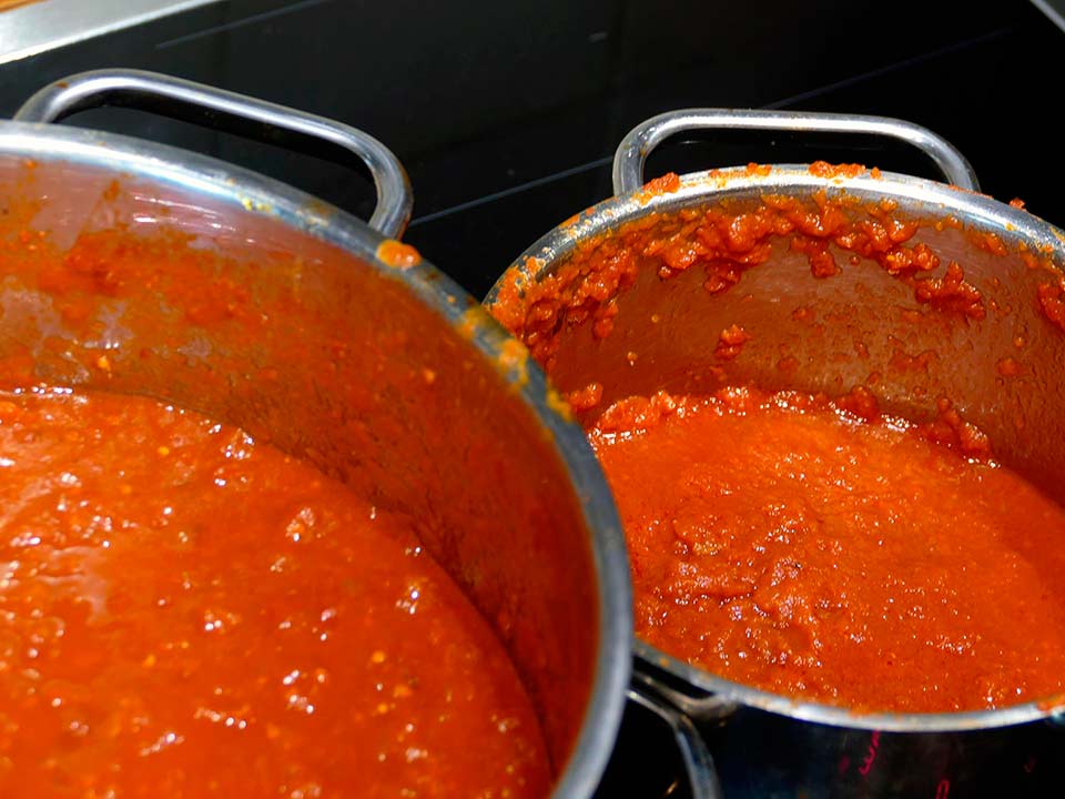 – möglichst vollreife Tomaten verwenden (wer keine hat, kann auch sonnengereifte aus der Dose nehmen) – langsam und lange simmern lassen – frische Kräuter nur am Ende mitziehen – Gläser und Deckel sterilisieren und mit Trichter befüllen, damit der Rand sauber bleibt. Auf den Kopf stellen ist nicht nötig.